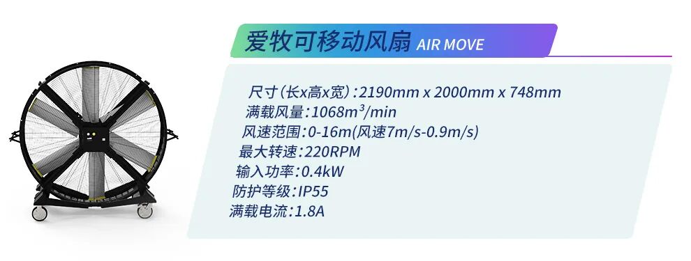 根據安裝方式不同風扇分為可移動款和懸掛款,愛牧系列為可移動風扇。