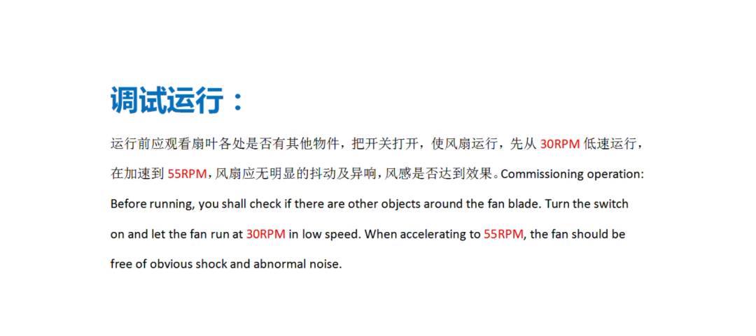 ③. 扇葉距離障礙物安距離不低于 0.2 米;